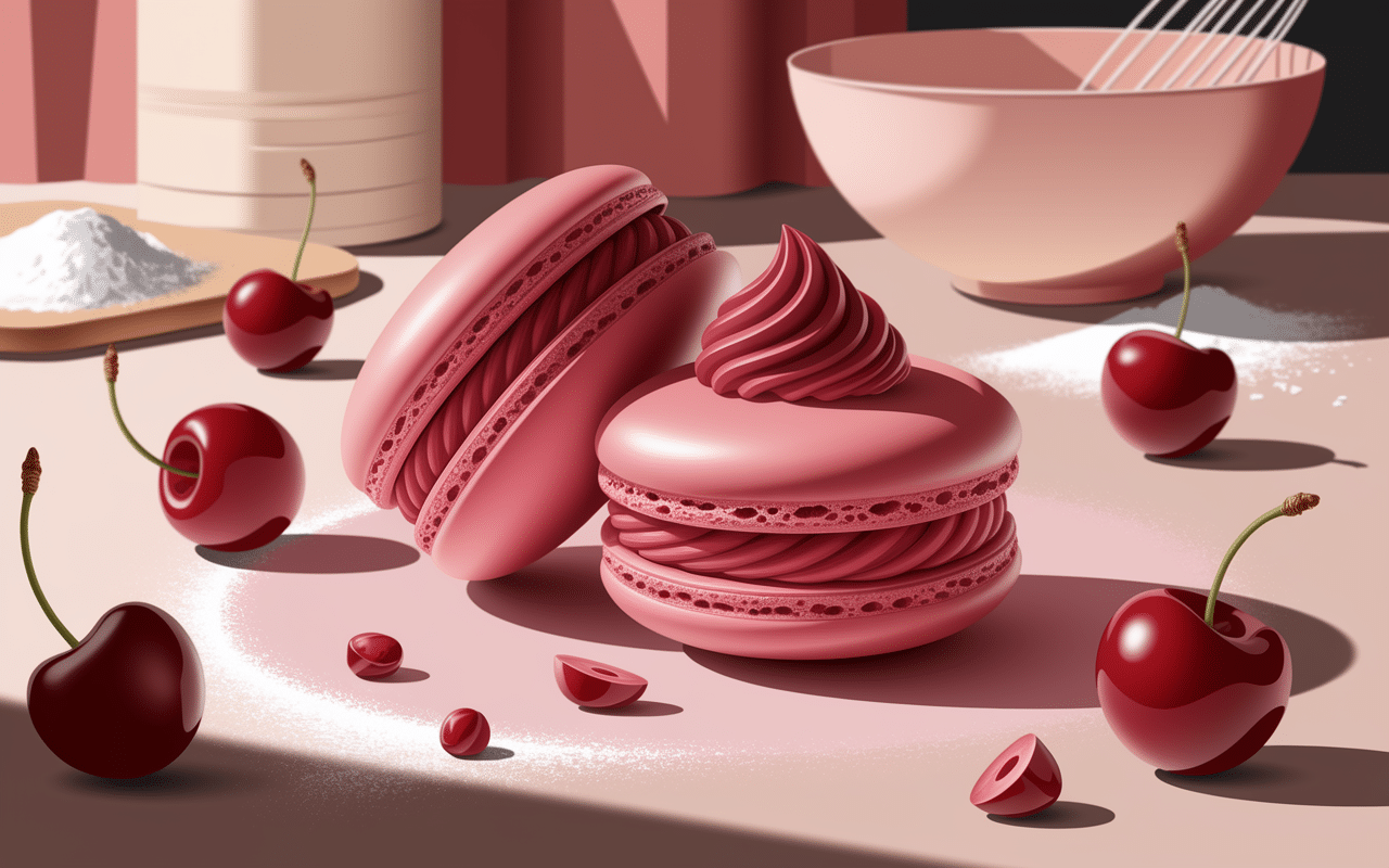 Découvrez le savoureux macaron aux cerises, garni d’un crémeux onctueux.