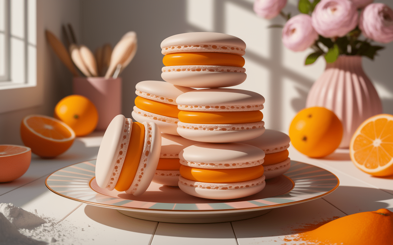 Découvrez le délicieux macaron garni d’une créme onctueuse à la mandarine.
