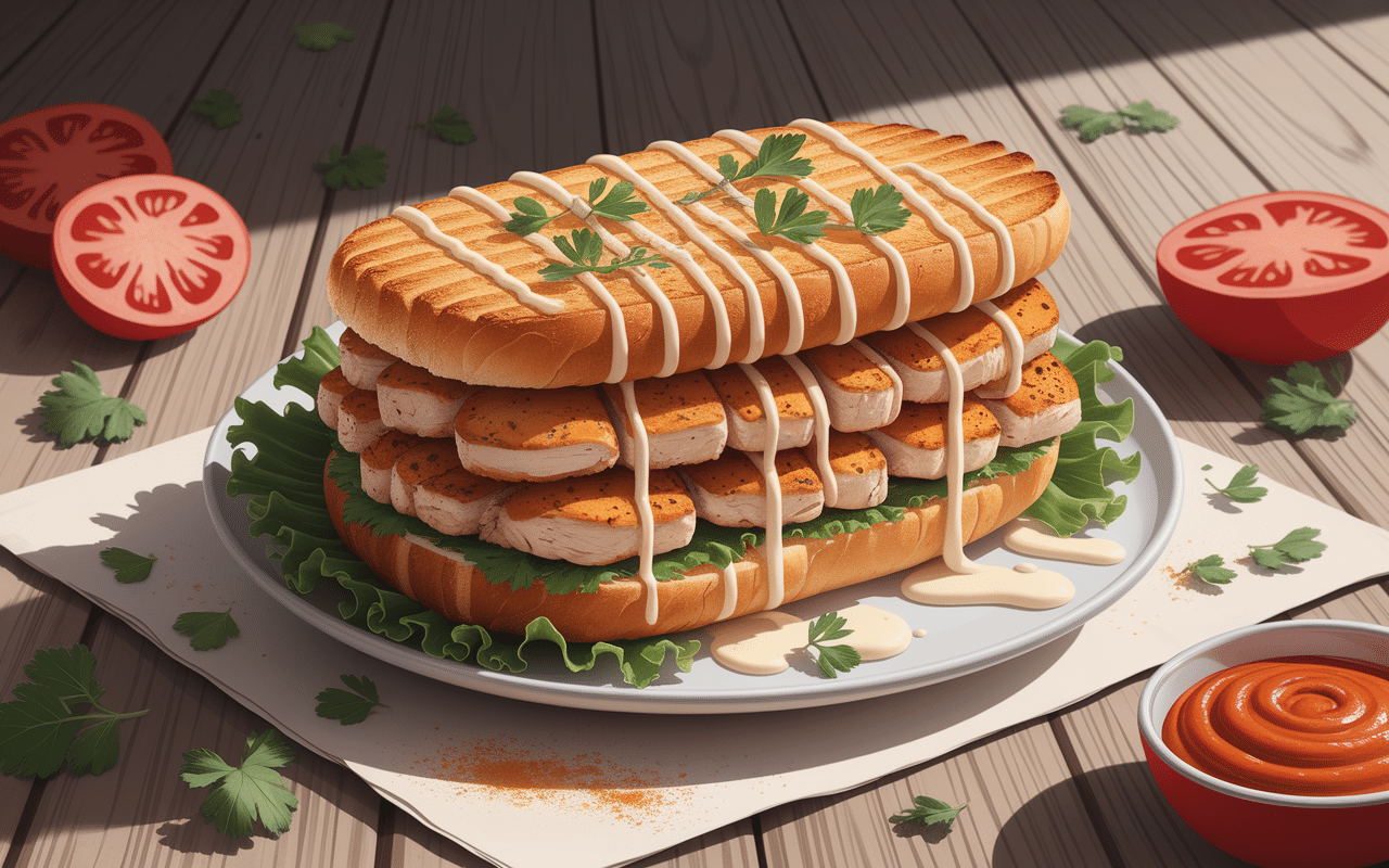 Régalez-vous avec ce mini croque-monsieur garni de viande kebab, fait avec des lamelles de poulet et une délicieuse béchamel à la sauce blanche.