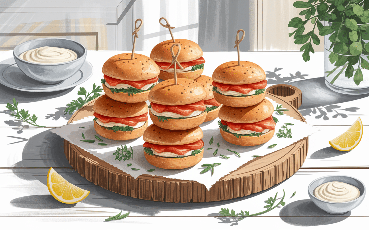 Découvrez les savoureux mini croque-monsieur au saumon fumé, élaborés avec du fromage crémeux à l’estragon, du beurre et une délicieuse béchamel.