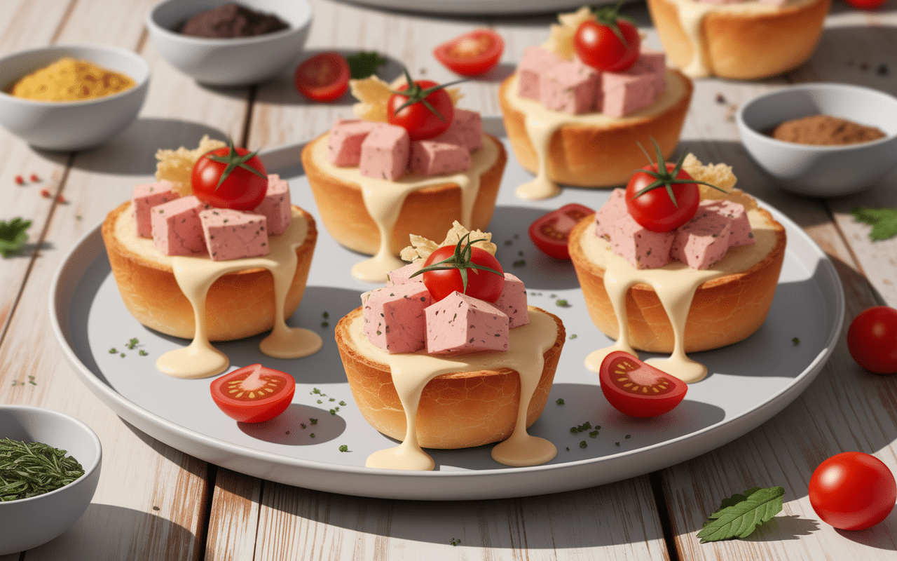 Ces délicieuses bouchées de croque-monsieur, garnies de thon, de fromage de chèvre, de tomates cerises, de beurre, de béchamel et d’emmental, sont parfaites pour vos apéritifs.