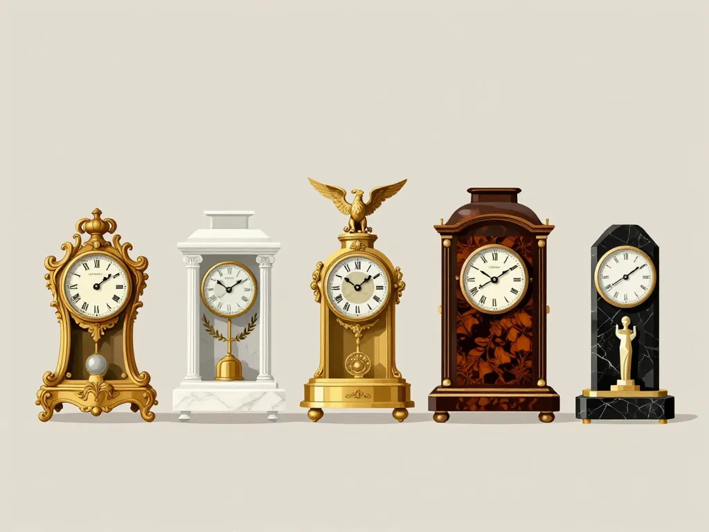 Pendule horloge ancienne, comparaison visuelle des styles historiques