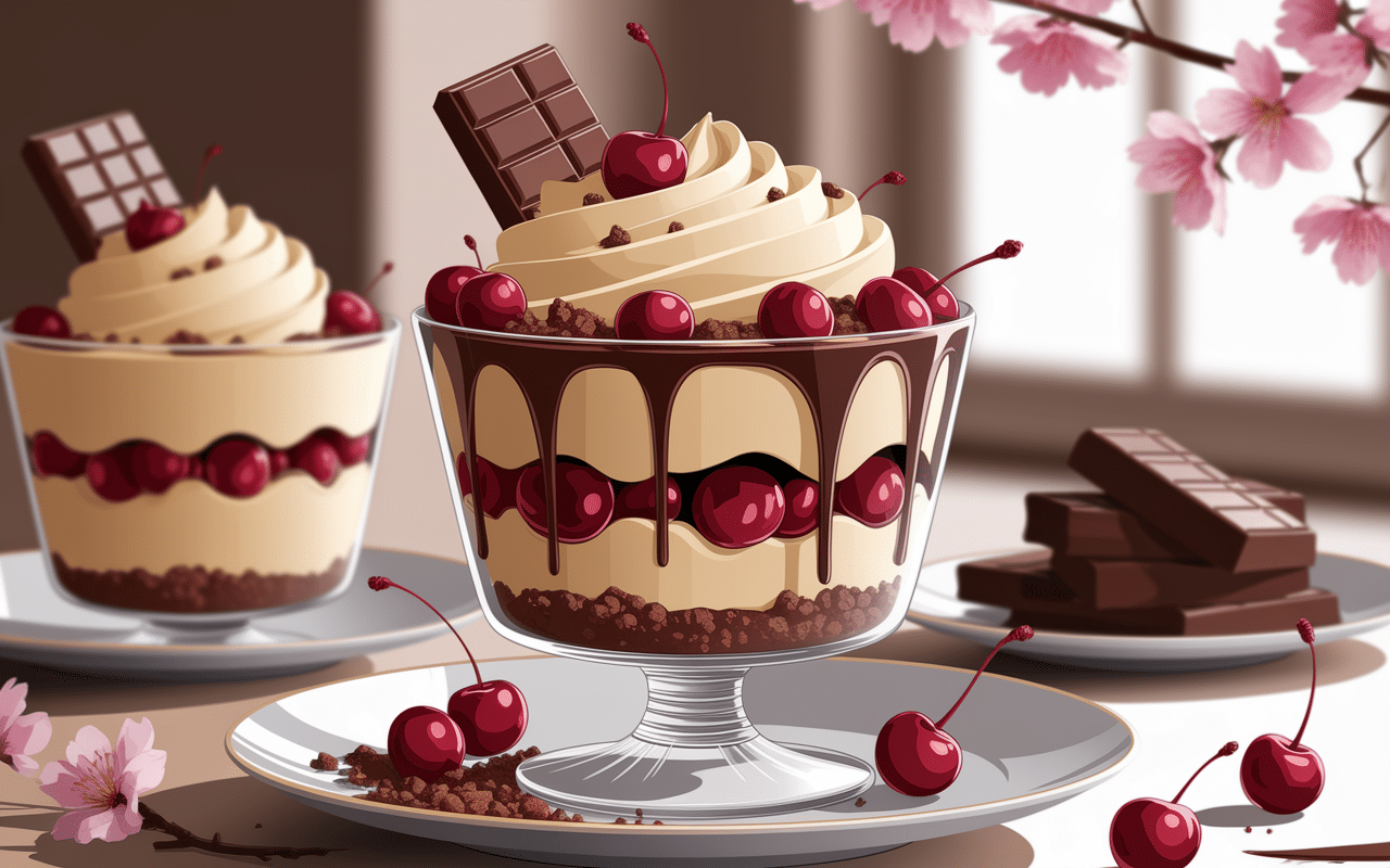 Cette verrine gourmande allie une onctueuse crème montée à la vanille, un savoureux coulis de chocolat au lait, des morceaux de cerise amarena juteuses, le tout rehaussé par un crumble de biscuit moelleux au chocolat.
